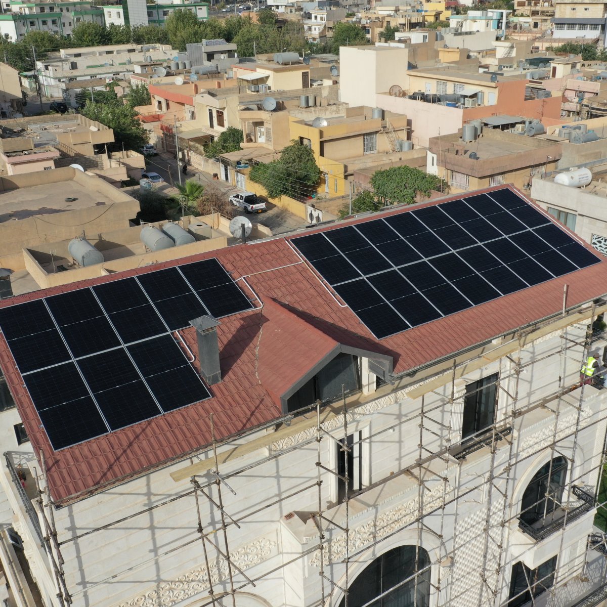 This project is based on 20KW hybrid inverter with 21.4KW solar power , this system is three phase and the whole building with 7 floors working on this system , with AGE OPzV 12V batteries .